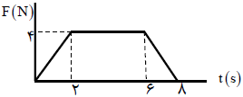 شکل زیر، منحنی نیروی خالص بر حسب زمان را برای متحرکی نشان میدهد که از حال سکون شروع به حرکت کرده است. اگر انرژی جنبشی جسم بعد از 8s به اندازه 120J باشد، جرم جسم را به دست آورید.