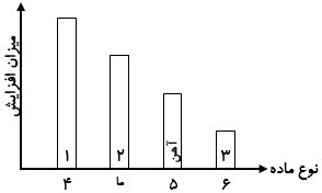 نمودار زیر، مقایسه میزان افزایش حجم مقدار یکسانی از چند ماده در اثر گرم شدن را نشان میدهد. با توجه به عبارات پیشنهاد شده، در مقابل هر عدد، عبارت مناسب بنویسید. (دو عبارت اضافه هستند)
