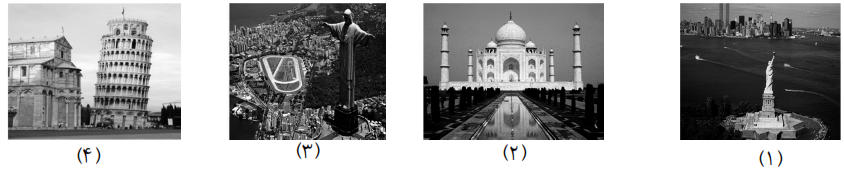 با توجه به ترتیب تصاویر، نام کشور مربوط به هر تصویر را انتخاب و گزینه صحیح را علامت بزنید.