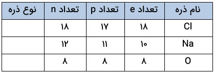 الف) نوع هر ذره را به لحاظ بار الکتریکی در جدول مشخص کنید (خنثی، یون مثبت یا یون منفی)