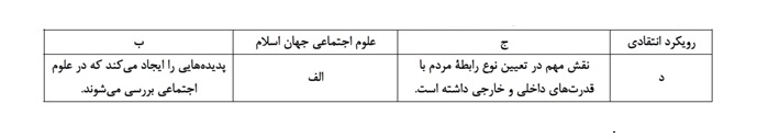 کدام گزینه به ترتیب در جای «الف، ب، ج و د» قرار میگیرد؟