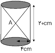 در ساعت شنی زیر در هر ثانیه، 0/05 سانتیمتر مکعب شن از منفذ A خارج میشود. اگر مخروط بالای ساعت شنی پر باشد، پس از چند ثانیه خالی میشود؟