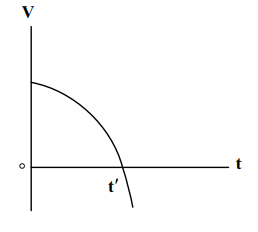 نمودار سرعت - زمان متحرکی که روی محور x حرکت میکند، مطابق شکل است. اگر سرعت متحرک V و شتاب آن a باشد، در بازه 0 تا ${t'}$ کدام مورد درست است؟