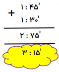 مریم مدت یک ساعت و چهل و پنج دقیقه ریاضی تمرین میکند و یک ساعت و نیم هم کتاب فارسی را میخواند. او روی هم چقدر مطالعه کرده است؟
