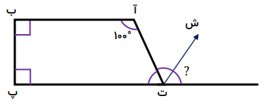 دو زاویهای که «ت» نام دارد، یک زاویه نیم صفحه است. وقتی زاویه داخلی ذوزنقه 80 باشد پس اندازه زاویه کناری باید ${100^ \circ }$ باشد تا با هم یک زاویه نیم صفحه را بسازند.