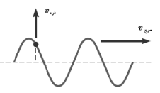 شکل زیر موجی عرضی در یک ریسمان را نشان میدهد که با تندی موج V به سمت راست حرکت میکند، در حالی که تندی ذرهٔ نشان داده شده ریسمان، ذره V است. آیا این دو تندی باهم برابرند؟ توضیح دهید.
