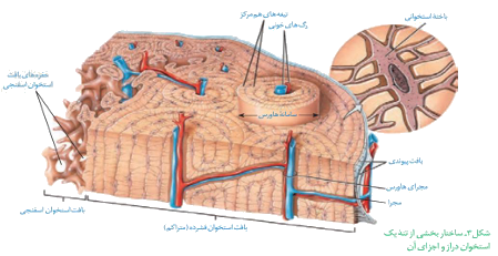 مطابق با اطلاعات کتاب درسی، در تنهٔ استخوان بازوی انسان، به غیر از مجرای مرکزی استخوان، مجاری دیگری وجود دارد که محتوی رگهای خونی و لنفیاند. کدام مورد دربارهٔ این مجاری درست است؟