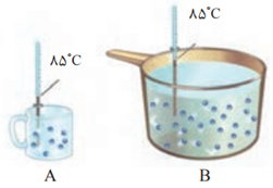 انرژی گرمايی آب موجود در ظرف $A$ بيشتر از ظرف $B$ است.