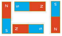 اگر چهار آهنربا به شکل روبهرو به شما بدهند، چگونه یک چهارگوش (مستطیل) با آنها میسازید؟ شکل را رسم کنید و قطبها را نمایش دهید.