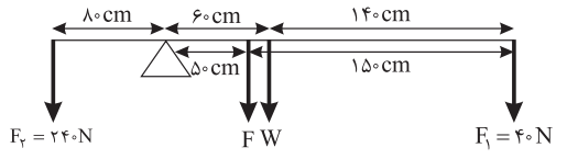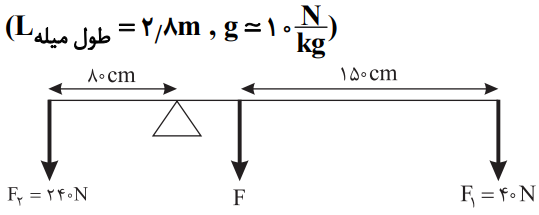میلهای به جرم 8 کیلوگرم مطابق شکل در حال تعادل است. نیروی F چند نیوتن است؟