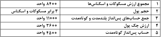 با توجه به اطلاعات زیر، بهترتیب، «مقدار شبهپول»، «مقدار سپردههای دیداری» و «میزان نقدینگی» کدام است؟
