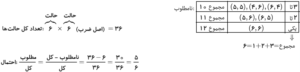 دو تاس را میاندازیم احتمال اینکه مجموع عددهای رو شده کمتر از $10$ باشد، چقدر باشد؟