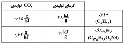 الف) انرژی تولید شده از زغالسنگ بیشتر از انرژی تولید شده از بنزین با یکای $kJ \cdot mol ^{-1}$ است.