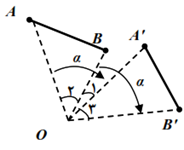 ثابت کنید دوران تبدیلی طولپاست. (اثبات را در حالتی بیان کنید که مرکز دوران O بر پارهخط AB و امتداد آن واقع نباشد و زاویهٔ دوران، از زاویهٔ $\widehat {AOB}$ بیشتر باشد.)