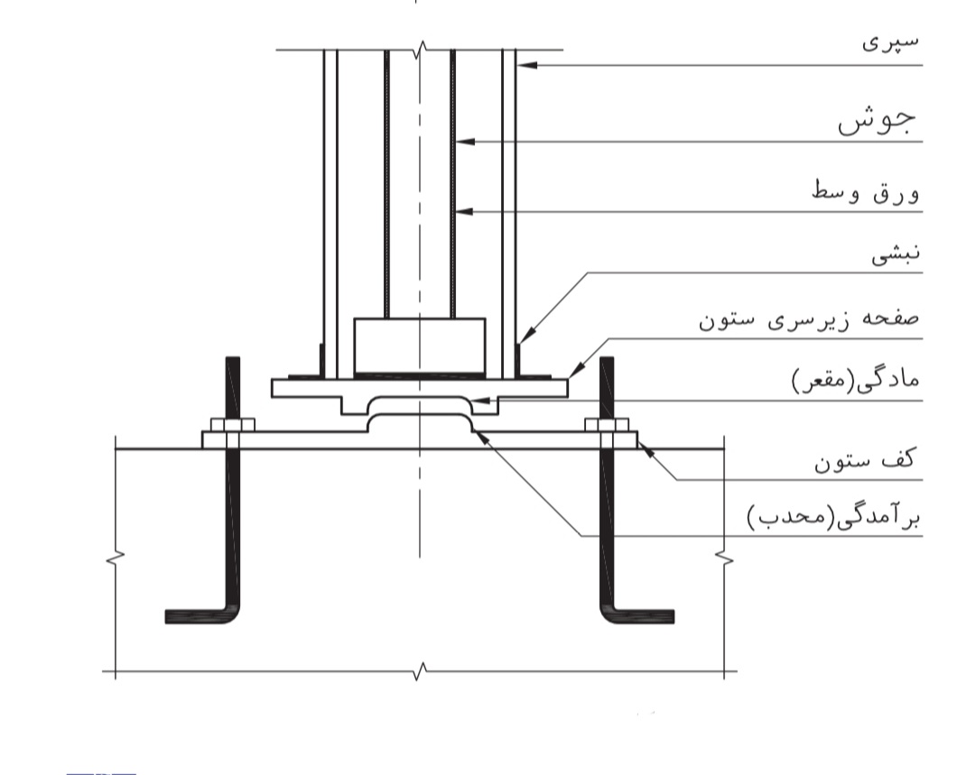 در کدام نوع اتصال صفحه ای که به ستون جوش می شود در وسط دارای فرو رفتگی و صفحه ای که به فونداسیون نصب می شود دارای برآمدگی است؟