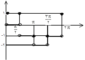 نمودار تابع $y = \left[ {\operatorname{Sin} x} \right] + \left[ {\operatorname{Cos} x} \right]$ را در بازهٔ $\left[ {0,2\pi } \right]$ رسم کنید.
