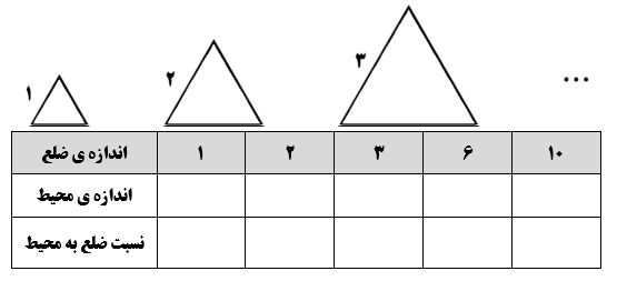 الف) با توجه به الگو میتوان فهمید: ............... × ................. = محیط هر مثلث.
