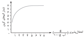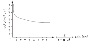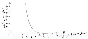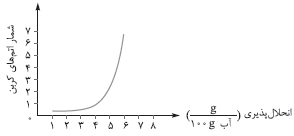 کدام نمودار، رابطهٔ انحلالپذیری الکلها $(\frac{g}{{100g\,{H_2}O}})$، با شمار اتمهای کربن زنجیرهٔ آلکانی را به درستی نشان میدهد؟