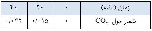 ب) سرعت متوسط تولید $C{O_2}$ را از 0 تا 40 ثانیه برحسب مول بر ثانیه حساب کنید.