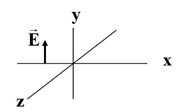 شکل روبهرو میدان الکتریکی یک موج الکترومغناطیسی سینوسی را در نقطهای معیّن و دور از چشمه، در یک لحظه نشان میدهد. موج انرژی را در خلاف جهت محور z انتقال میدهد. جهت میدان مغناطیسی موج را در این نقطه و این لحظه تعیین کنید.
