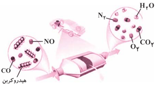 شكل مربوط به يک مبدل كاتاليستی است كه با عبور آلايندههای حاصل از موتور خودروها از آن، مقدار ${{C}_{x}}{{H}_{y}}$، $CO$ و $NO$ به صفر میرسد.