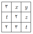 در مربع لاتینِ مقابل، مقادیر z، y، x و t را به دست آورید.
