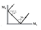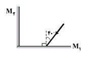 شکل روبهرو دو آینهٔ تخت ${M_1}$ و ${M_2}$ را نشان میدهد که با زاویهٔ 90 درجه نسبت به هم قرار گرفتهاند. پرتو نوری به آینهٔ ${M_1}$ میتابد.