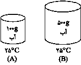 انرژی گرمایی B بزرگتر از A است؛ اما میانگین جنبش مولکولها در آن دو برابر است.