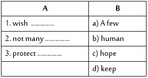 Match the words in column "A" with the words in column "B". There is one extra word in "B".