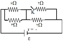 در شکل مقابل با بستن کلید k توان مصرفی مقاومت 3 اهمی چند برابر میشود؟