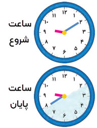 علی در ساعت شروع از خانه خارج شد و در ساعت پایان به باشگاه رسید. او چه مدتی در راه خانه تا باشگاه بوده است؟