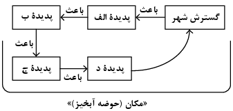 با توجه به اینکه در هر مکان، پدیدههای مختلفی هستند که بر یکدیگر تأثیر گذاشته و به نوبهٔ خود از هم تأثیر میپذیرند، کدام گزینه مطابق با تصویر زیر، به مطلب درستی اشاره دارد؟