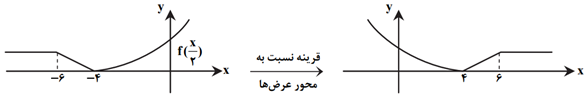 نمودار $y=f(x-2)$ بهصورت مقابل است. تابع $y=f(-\frac{x}{2})$ در کدام بازه اکیداً صعودی است؟