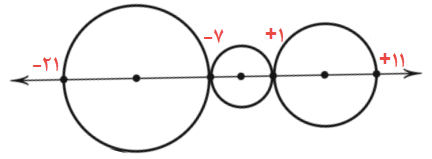 در شکل زیر فاصلهی مرکز دایرهی بزرگ تا مرکز دایرهی متوسط چند واحد است؟