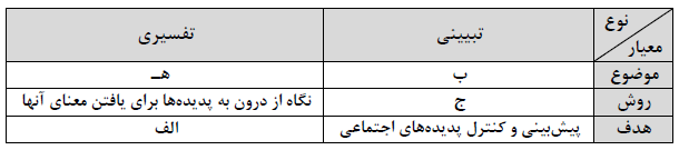 بهترتیب هر یک از عبارتهای زیر، در رابطه با رویکردهای جامعهشناسی، با کدام قسمت جدول در ارتباط است؟