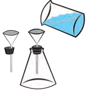 در شکلهای زیر، برای ریختن آب به درون قیف، یک بار از درپوش تک سوراخه (شکل الف) و بار دیگر از درپوش دو سوراخه (شکل ب) استفاده میکنیم. در حالت ….. آب راحتتر از طریق قیف وارد ارلن شیشهای شده، همچنین در حالت ….. احتمال ایجاد حبابهای هوا بیشتر است.