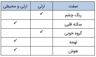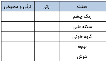 نوع هر یک از صفات جدول زیر را با زدن علامت تعیین کنید.