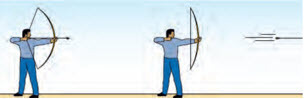 کمان کشیده شده دارای انرژی پتانسیل کشسانی است. با رها کردن زهکش کمان، انرژی پتانسیل ذخیره شده به انرژی جنبشی تیر تبدیل میشود.