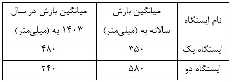 جدول زیر میانگین بارش در دو ایستگاه هواشناسی را نشان میدهد: