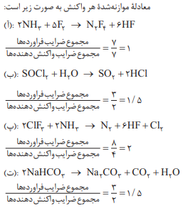 پ) $Cl{F_3}(g) + N{H_3}(g) \to {N_2}(g) + HF(g) + C{l_2}(g)$