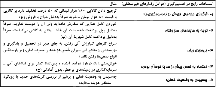 موارد زیر، بهترتیب، کدام اشتباهات رایج در تصمیمگیری را بیان میکند؟