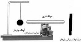 در شکل زیر یک میلهٔ پلاستیکی باردار بهصورت زیر به یک آونگ نزدیک میشود.