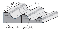 با وزش باد، بخشِ نرم، تسطيح و بخش سخت، تخريب میشود.