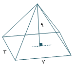هرمی با قاعدهی مستطیل شکل به طول 7 و عرض 3 و همچنین ارتفاع 9 سانتیمتر داریم. حجم آن را به دست آورید. (فرمول نوشته شود)