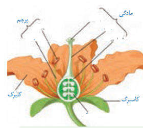 شکل زیر مربوط به گل است. اجزای نوشته نشده را کامل کنید.