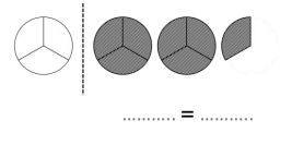 برای شکل زیر عدد مخلوط مناسب نوشته و سپس آن را به کسر بزرگتر از واحد تبدیل کنید.