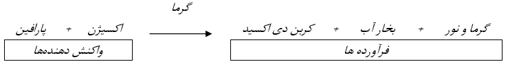 واکنش شیمیایی سوختن پارافین را بنویسید. در این واکنش، واکنشدهندهها و فرآوردهها را تعیین کنید.