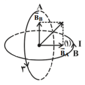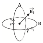 مطابق شکل زیر، دو حلقهٔ هممرکز حامل جریان به صورت عمود بر هم درون هم قرار گرفتهاند. اگر بردار میدان مغناطیسی برایند دو حلقه در مرکز آنها به صورتی باشد که در شکل نشان داده شده، جهت جریان حلقههای $A$ و $$ بهترتیب از راست به چپ مطابق کدام گزینه است؟