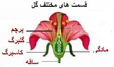 الف) بخشهای مختلف این گل را نامگذاری کنید.