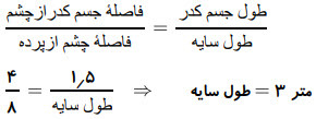 اگر یک نوجوان به قد 1/5 متر در 4 متری یک شعلۀ شمع بایستد، سایۀ آن روی دیواری که در 8 متری شعلۀ شمع است، چند متر خواهد بود؟